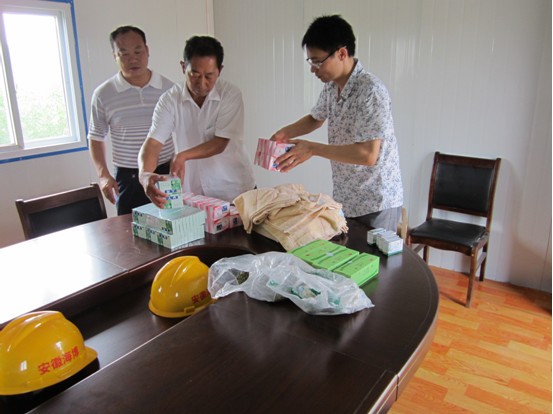 進(jìn)入盛夏,為切實(shí)保障一線施工人員的身體健康,預(yù)防高溫中暑,公司委派分管部門到各項(xiàng)目部送防暑降溫物品,切實(shí)關(guān)心在高溫條件下堅(jiān)持施工的一線施工人員。公司要求項(xiàng)目部加強(qiáng)對(duì)防暑降溫知識(shí)的宣傳,落實(shí)每一位工人的防暑降溫物品,并要求現(xiàn)場(chǎng)施工人員隨身攜帶防暑降溫物品,如人丹、清涼油、風(fēng)油精、十滴水等。